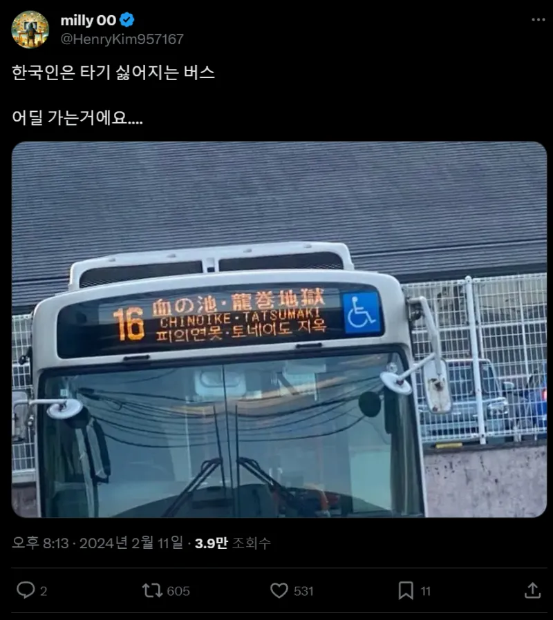 유머] 무서운 버스.. 강윤식 강윤식님의 홈 전체게시물 아이디로 검색 강윤식님의 홈 전체게시물 아이디로 검색 2024-02-16 20:07 151 0 - 첨부파일 : 1.webp (60.2K) - 다운로드 0 2024-02-16 20:07:48 이전글 다음글 검색 목록 답변 글쓰기 본문 ㅇ..ㅇ? 출처: 웃긴대학 댓글목록0 등록된 댓글이 없습니다. 댓글쓰기 댓글 포인트 안내 이름 필수 비밀번호 필수 비밀글 사용 첨부파일 동영상 이모티콘 적용하기 * 지원 동영상 서비스 목록 보기 지원 동영상 서비스 목록 서비스명URL 주소 유튜브https://www.youtube.com 비메오https://vimeo.com 네이버 TVhttp://tv.naver.com 카카오 TVhttps://tv.kakao.com 테드https://www.ted.com 판도라http://www.pandora.tv 데일리모션https://www.dailymotion.com 슬라이더쉐어https://www.slideshare.net 유쿠http://www.youku.com iQiyihttp://www.iqiyi.com 자동등록방지 자동등록방지 숫자음성듣기 새로고침 자동등록방지 숫자를 순서대로 입력하세요. 댓글등록 댓글 포인트 안내